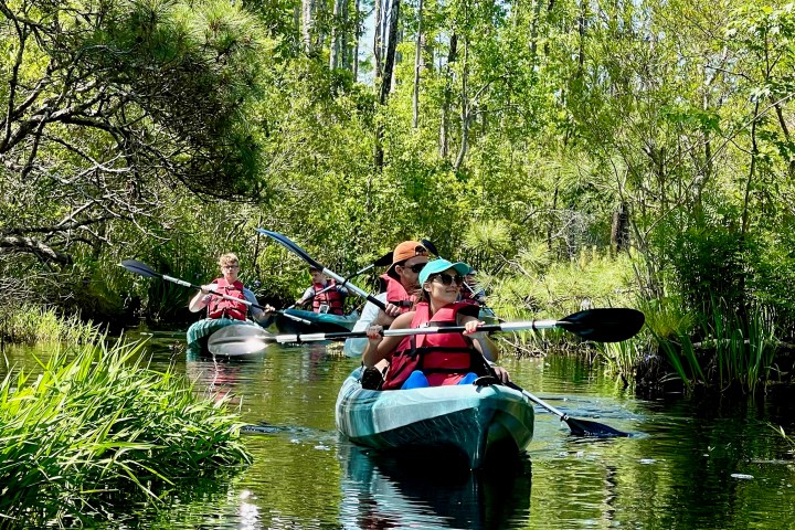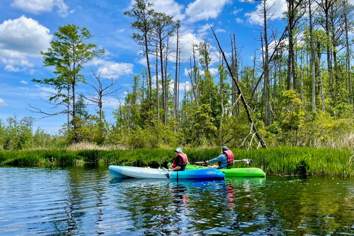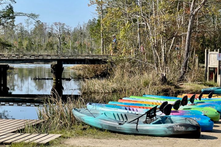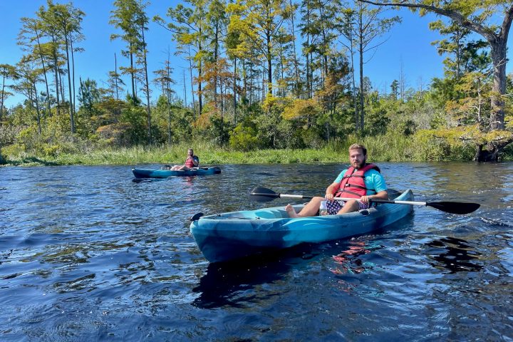 Discover the intriguing history of logging and moonshining while navigating the serene waters of the Alligator River Wildlife Refuge. Glide beneath the grandeur of bald cypress and loblolly pine trees during our unforgettable kayak tour. Whether you’re a novice or an expert paddler, this two-hour excursion on the Alligator River welcomes adventurers of every age.