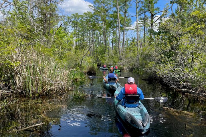 Our Alligator River kayak tour is full of adventure! While kayaking Outer Banks, you’ll explore The Alligator River National Wildlife Refuge and its very unusual habitat to learn all about its exotic wildlife.